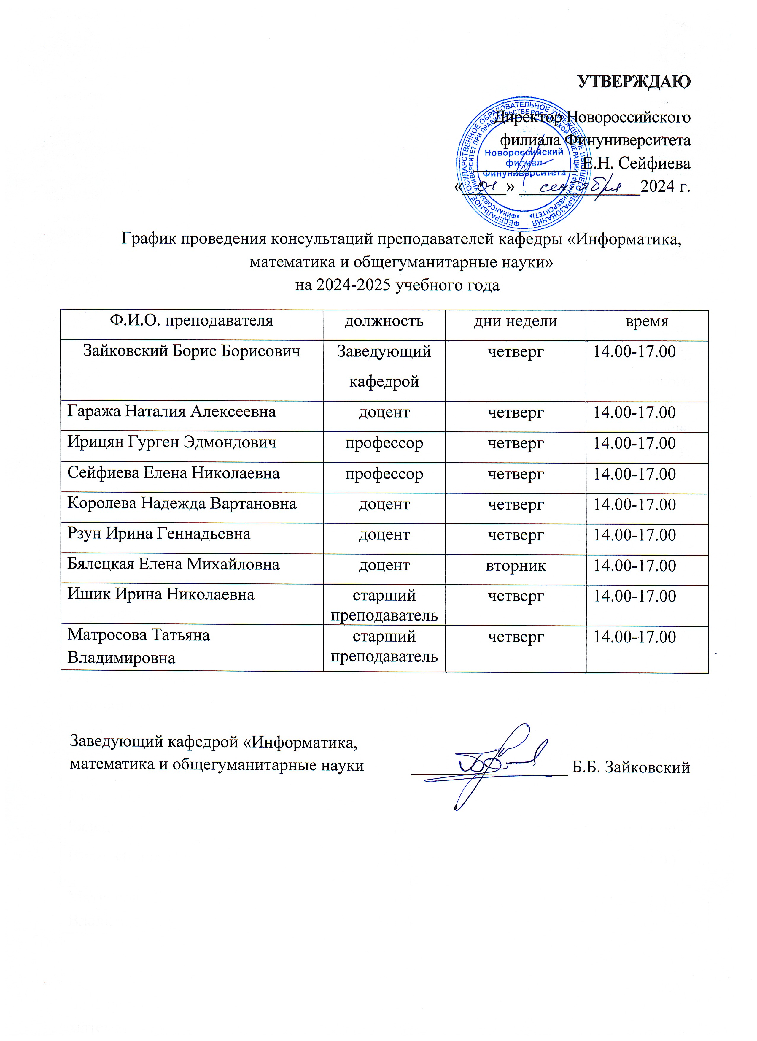 График консультаций ППС кафедры "Информатика, математика и общегуманитарные науки" на 2024-2025 учебный годJPG