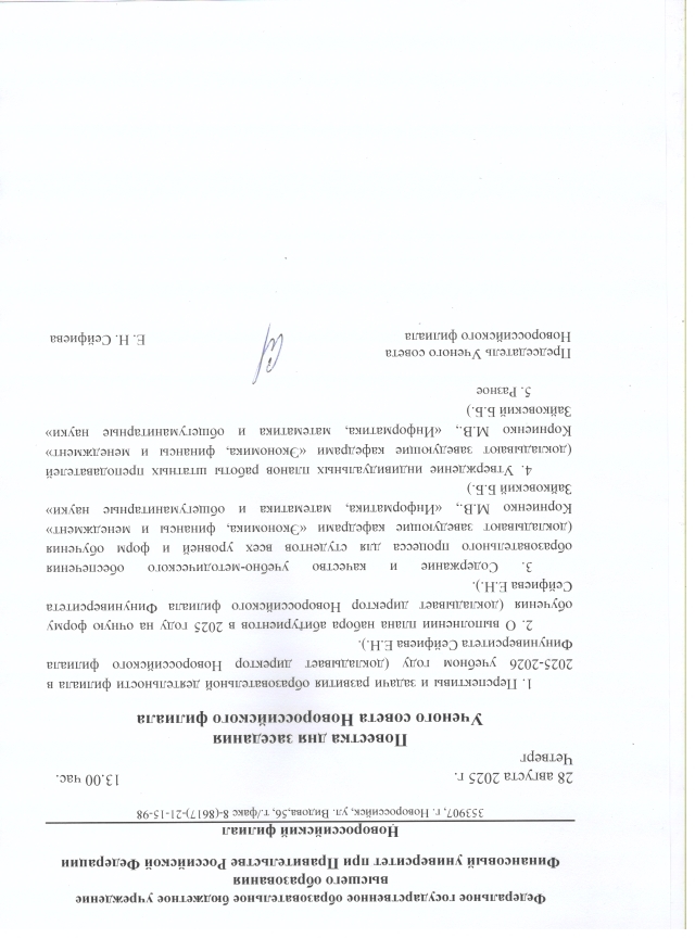 План работы Ученого совета на 2025/2026 г. ФГОБУ ВО «Финансовый университет при Правительстве Российской Федерации» Новороссийского филиала на 2025/2026 учебный год утвержден на заседании Ученого совета Новороссийского филиала 27 июня 2024 года, протокол № 13.