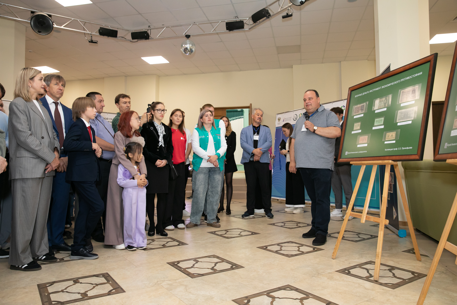 Первым ярким событием федерального этапа фестиваля стала уникальная лекция «Военные деньги. Инструмент экономического противостояния», которую для всех участников провел по тематической выставочной экспозиции Станислав Прокофьев. В ходе лекции он рассказал о редких экспонатах из коллекции военных денег, которую собирал более 15 лет и передал впоследствии в дар Музею Финансового университета. Так участники Фестиваля смогли прокачать свои знания не только в современных финансах, но и узнали много нового из истории денег. После лекции ректор ответил на вопросы участников и подарил им буклеты о собрании военных денег, всем желающим оставив в нем авторскую дарственную надпись.