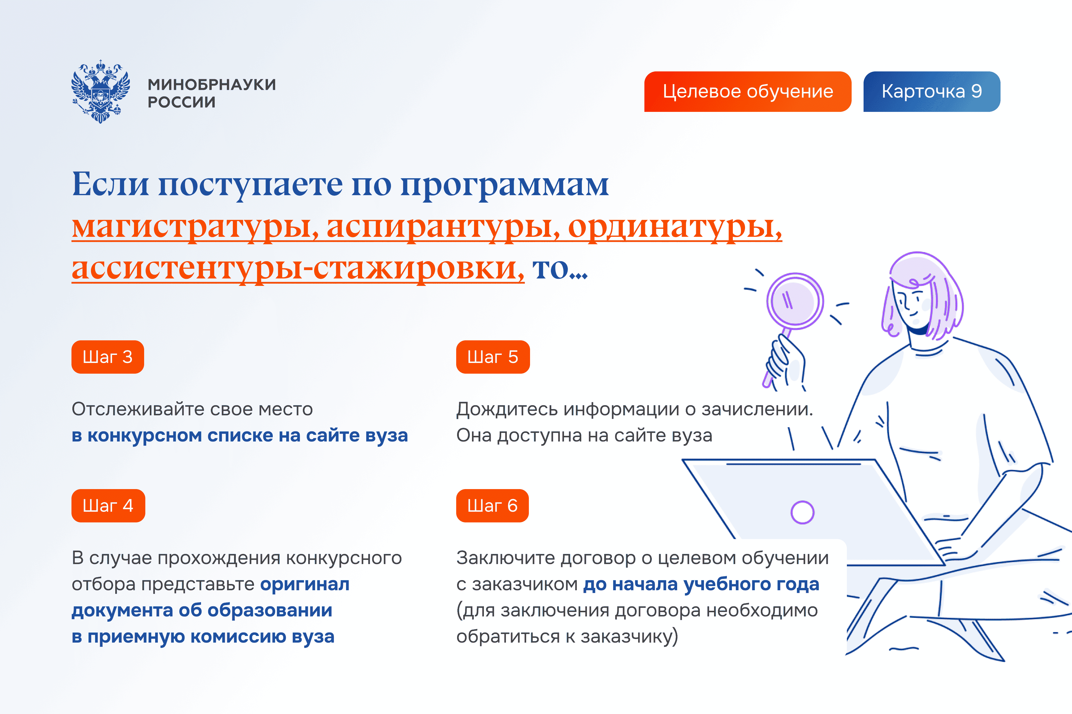 Шаг 6. Заключите договор о целевом обучении с заказчиком до начала учебного года (для заключения договора необходимо обратиться к заказчику).