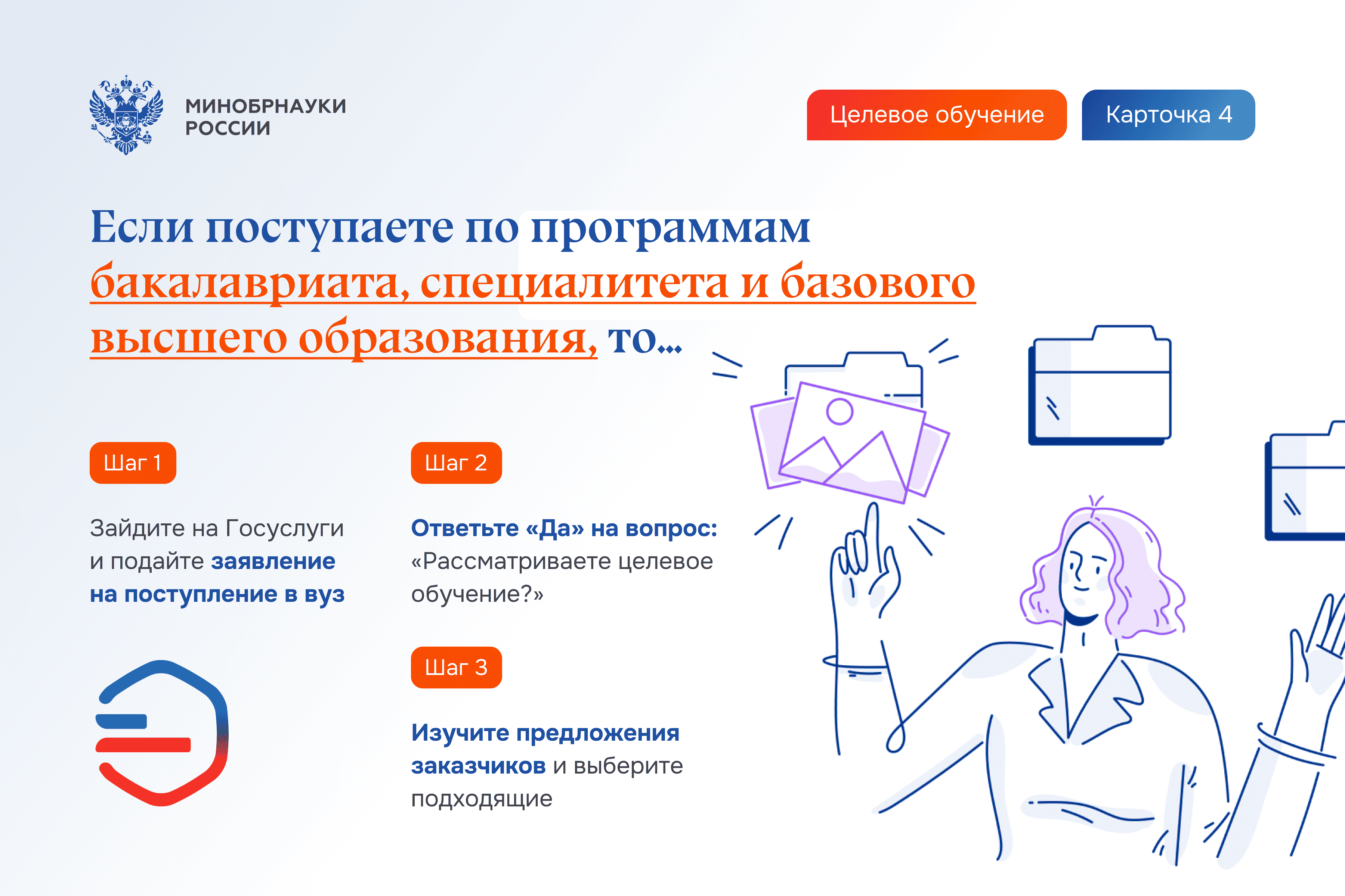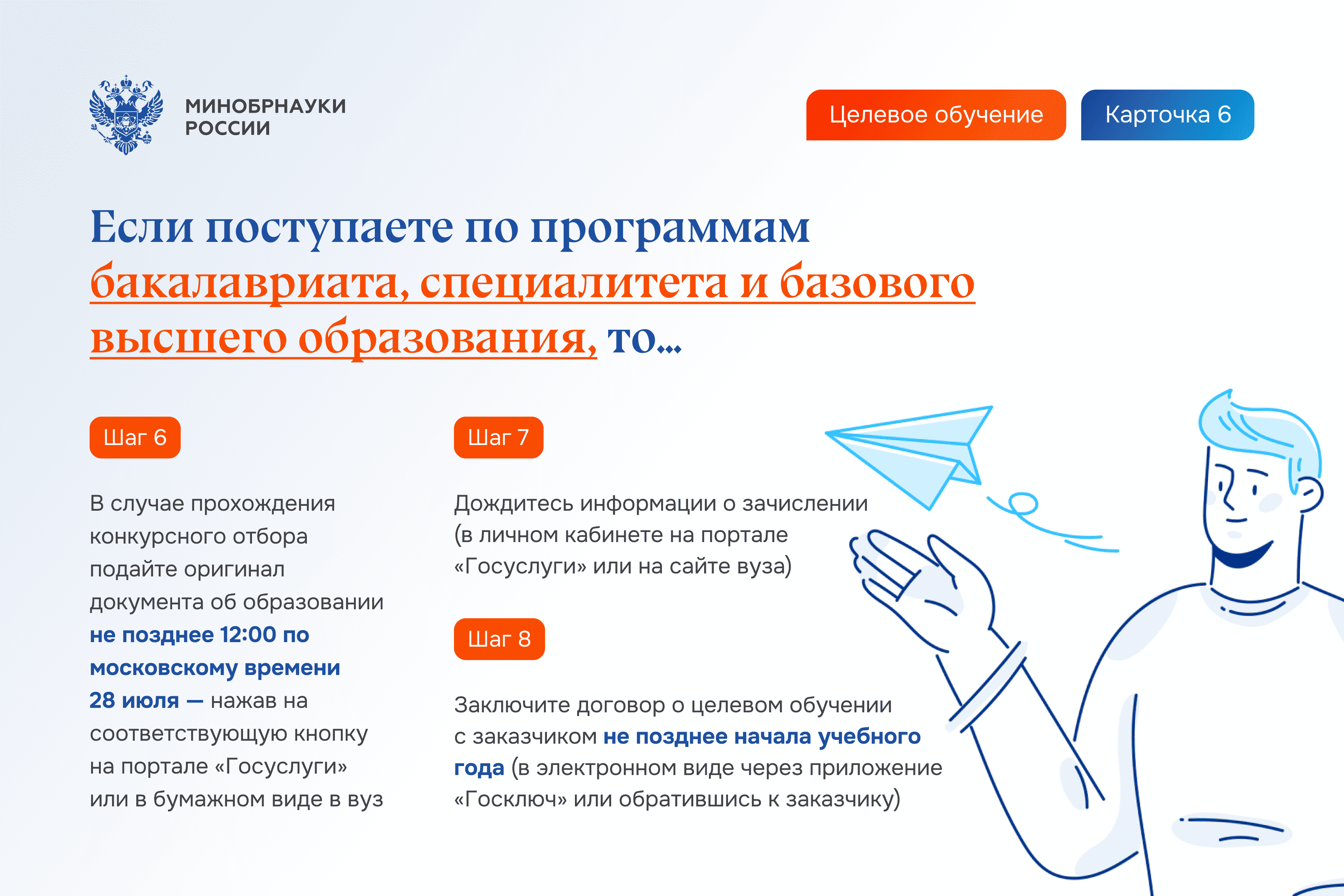 Шаг 8. Заключите договор о целевом обучении с заказчиком не позднее начала учебного года (в электронном виде через приложение «Госключ» или обратившись к заказчику).