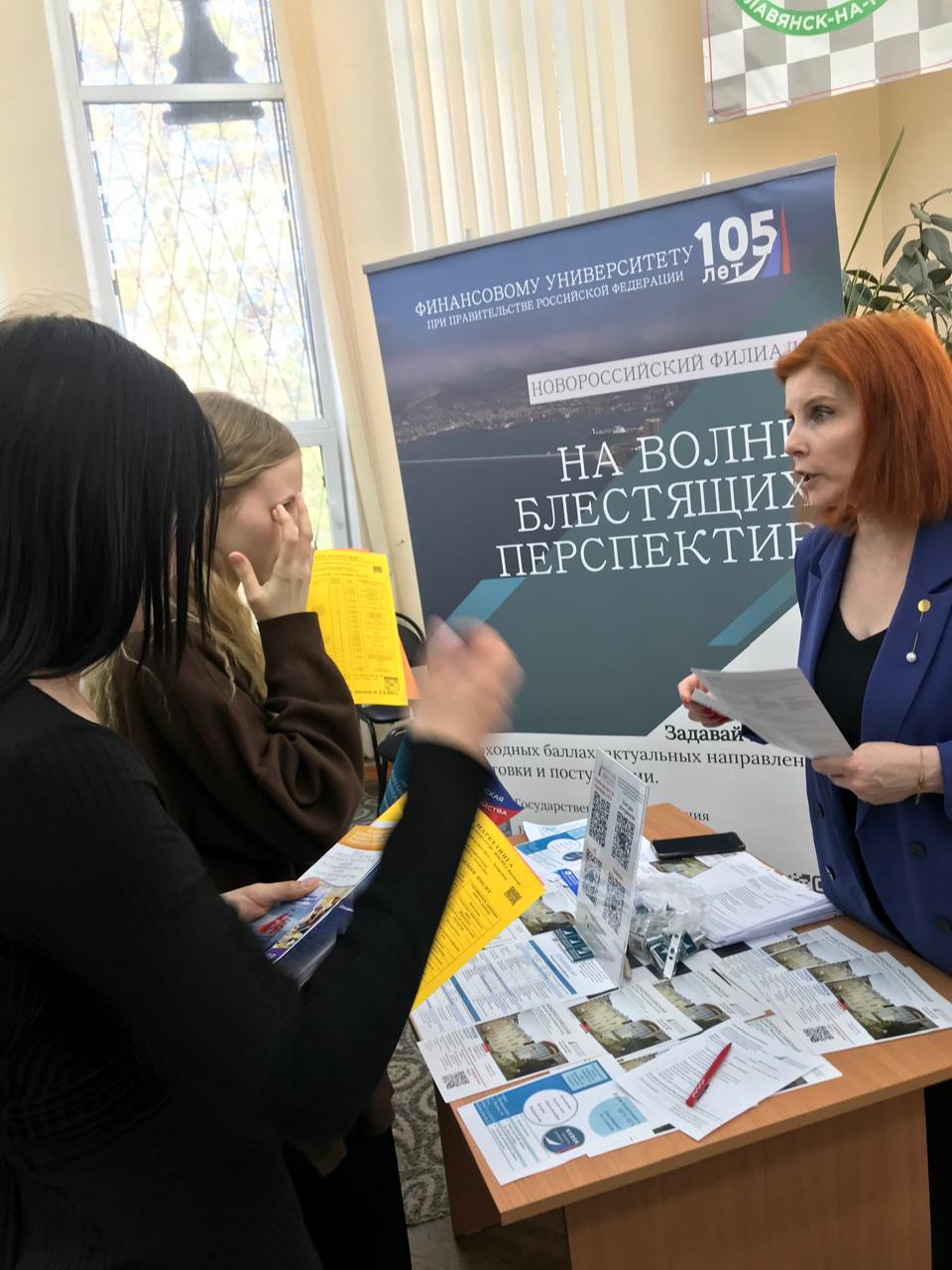 18 апреля 2025 года заместитель директора Касимова Н.С.и старший преподаватель Ишик И.Н. представили Финансовый университет при Правительстве РФ (кампус в г. Новороссийске) на Всероссийской ярмарке вакансий в г. Славянск-на-Кубани.
