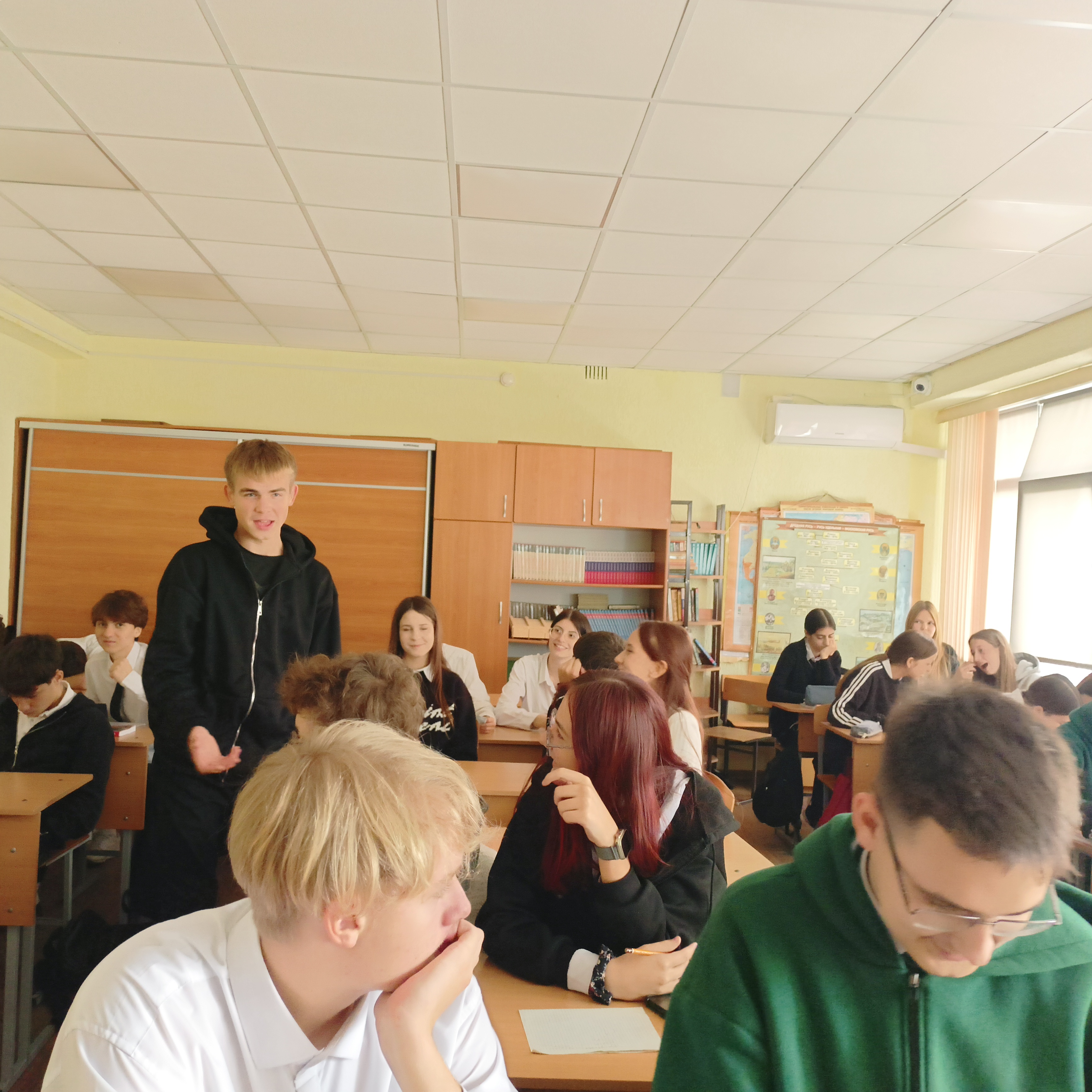 21.10.2025 г. с учениками 9 «Д» класса МАОУ СОШ № 19 имени В.Н. Чаленко муниципального образования город Новороссийск в рамках проекта «Школа начинающего ученого» Новороссийского филиала Финуниверситета проведен интерактивный урок «Менеджмент: сущность, цели, функции, принципы».