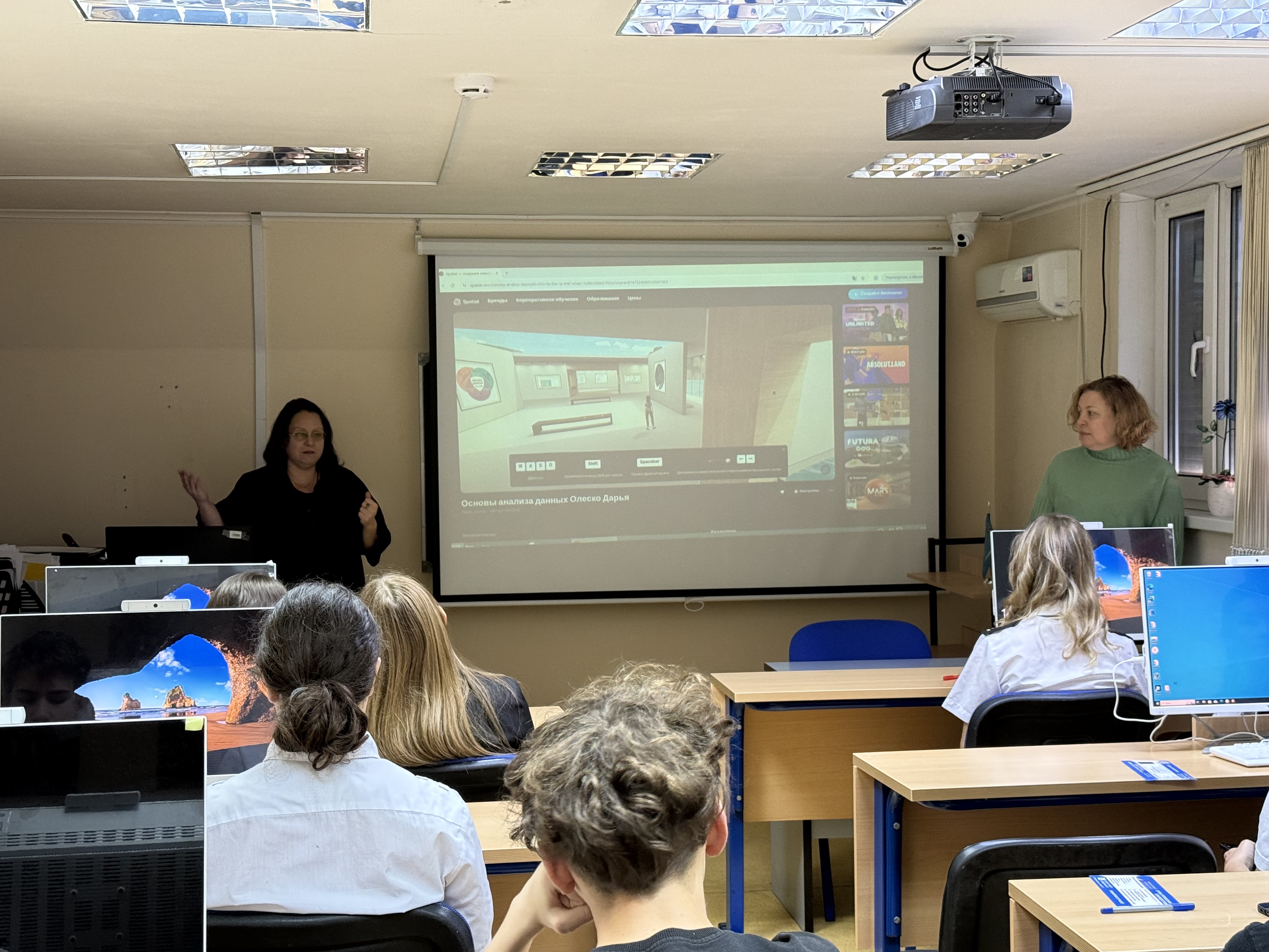 Студентка 2 курса направления подготовки Бизнес информатика ( Лобачева Анастасия) провела интересную беседу о своих видах учебной деятельности ( работа в Word, Exel, Python,Tilda, Метавселенная) ,провела мастер-класс и выполнила задания в Python вместе со школьниками. Школьники заглянули в мир бизнес-анализа, цифровых решений и IT-менеджмента.