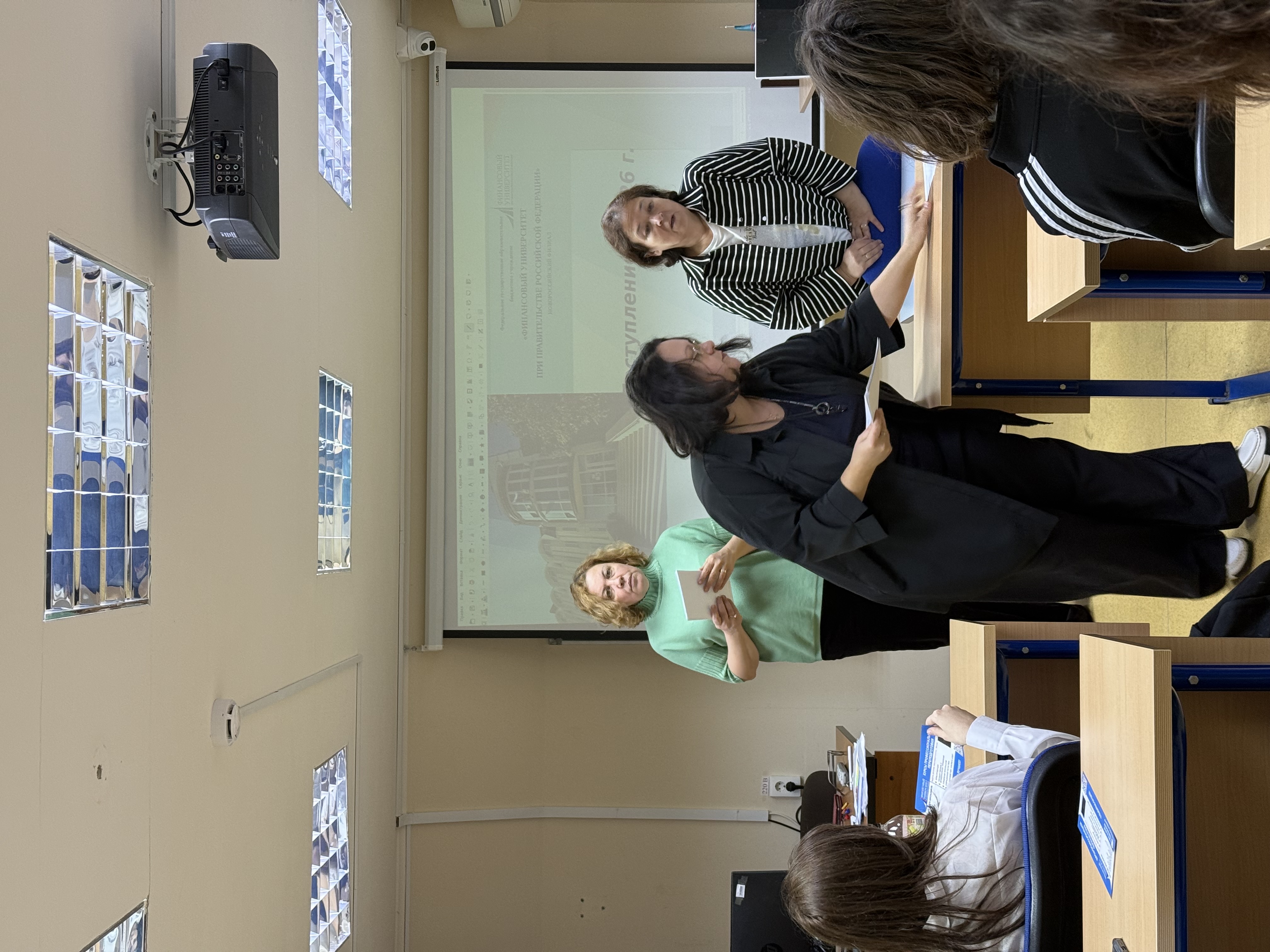 В рамках встречи с учениками 10 класса старшим преподавателем Ишик И.Н. и студенткой 2 курса направления подготовки Экономика Балаян Сюзаной была предоставлена подробная информация о преимуществах Финансового университета, его роли в подготовке кадров, о правилах приема, особенностях подачи документов и стратегии выбора образовательной программы, были даны ответы на все интересующиеся вопросы.