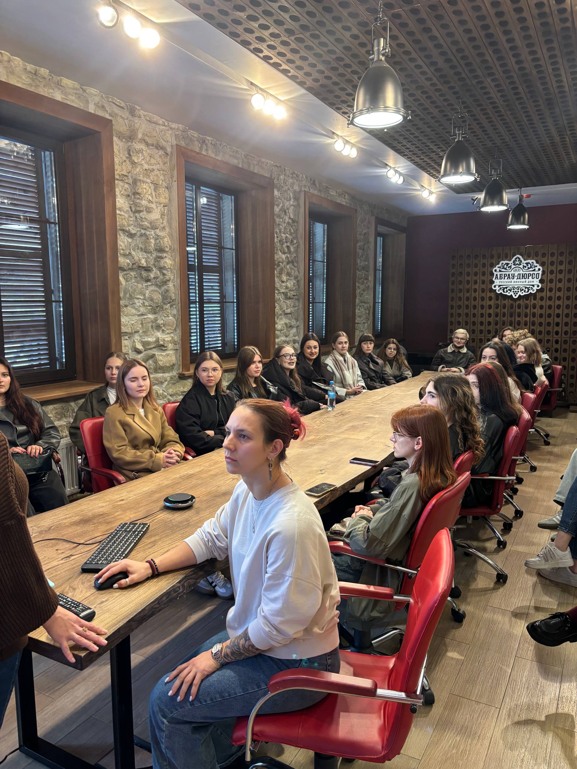 Студенты Финансового университета посетили Центр винного туризма «Абрау-Дюрсо». Там в неформальной обстановке они пообщались с директором по туризму ООО «Центр винного туризма Абрау-Дюрсо» Струковой Мариной Альбертовной и руководителем отдела по подбору персонала и корпоративной культуре Кутько Еленой Геннадьевной. Ребятам рассказали о вакансиях и перспективах карьерного роста в группе компаний «Абрау-Дюрсо». Кроме того, студенты узнали о программах обучения и стажировки в данной организации.