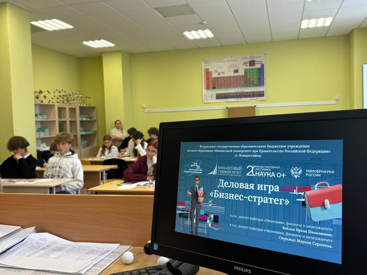 В рамках фестиваля «NAUKA 0+ Кубань» 30 октября преподаватели Финансового университета при Правительстве РФ совместно со студентами организовали и провели деловую игру «Бизнес-стратег» для учеников 9-го класса МАОУ СОШ № 34 . Данное мероприятие было направлено на популяризацию науки среди школьников.